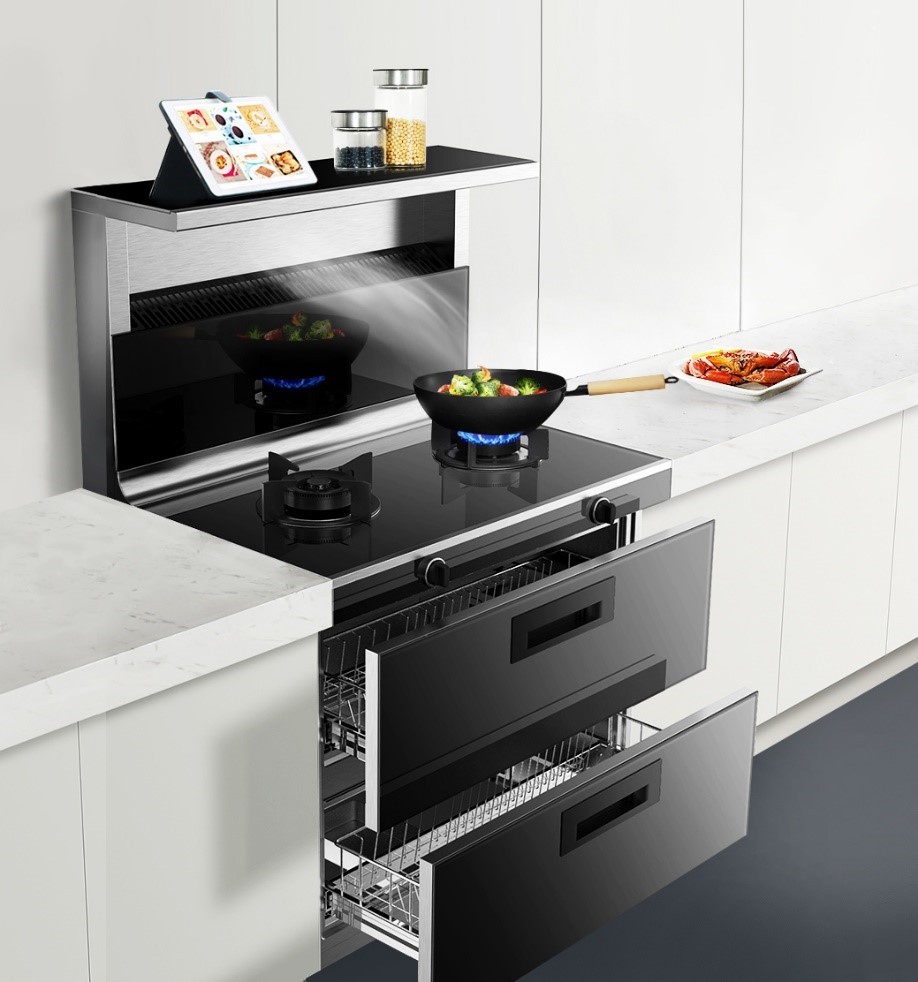 北斗星C2采用三合一設計,吸油煙機+燃氣灶+消毒柜,將置物、吸煙、烹飪、消毒、換氣等功能完美融為一體,有效節約廚房空間。