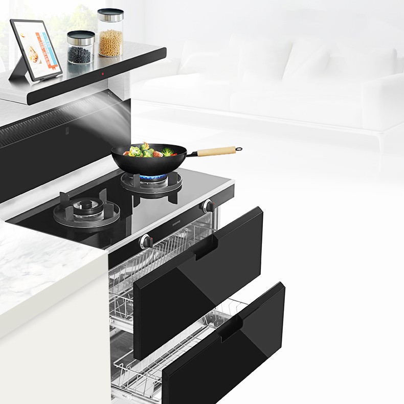 北斗星A1集吸油煙機、燃氣灶、消毒柜等多種電器于一體,省去了上方傳統壁掛式吸油煙機的空間(可加裝一排櫥柜),為廚房提供了更多的使用空間,能夠很好得解決廚房電器的擁擠問題。對于想要一起下廚的一家人來說,不再煩惱空間擁擠,可以享受烹飪的溫馨時光。同時北斗星A1集成灶擁有超大置物臺可放置調料罐,干凈整齊又美觀。