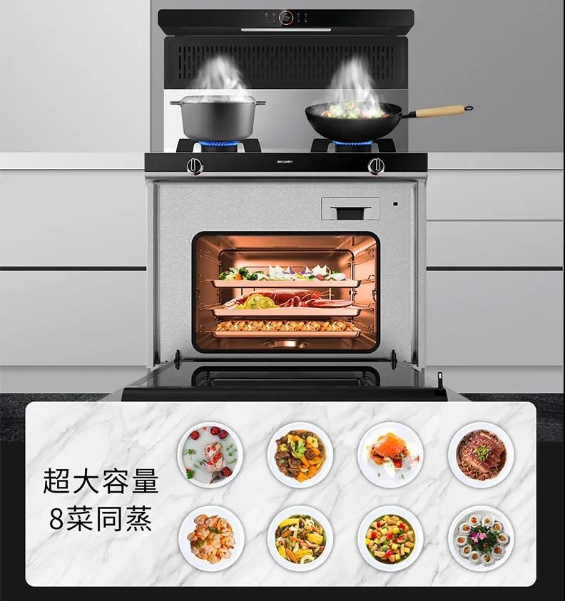 集成灶正是對(duì)傳統(tǒng)廚房的革新,不僅油煙吸凈率在99%以上,而且它又是對(duì)傳統(tǒng)三件套廚電的創(chuàng)新,將油煙機(jī)、燃?xì)庠?、消毒?蒸烤箱等功能合為一體,具有獨(dú)特的組合方式。集成灶大容量蒸箱:不串味。上面炒菜、下面蒸菜,一鍵烹飪,小白變大廚,30分鐘就能夠輕松搞定一桌菜,不再為漫長(zhǎng)的烹飪過(guò)程而辛苦勞累!