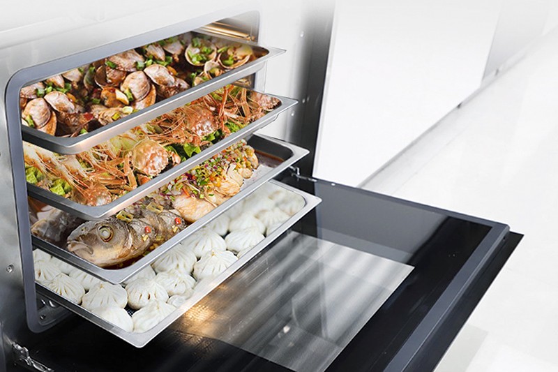 蒸菜不止一味。北斗星A5配備的蒸箱有著66L大容積,一鍵蒸制8個菜肴也完全可以。同時,一改普通的蒸鍋蒸制食物(蒸汽通常會在頂部凝結成水汽滴入食物,破壞食材的口感和營養),而北斗星A5采用上下同蒸,均勻受熱,杜絕水汽回流,頂部無冷凝水,8個菜同蒸不串味,這樣的蒸菜更加美味。