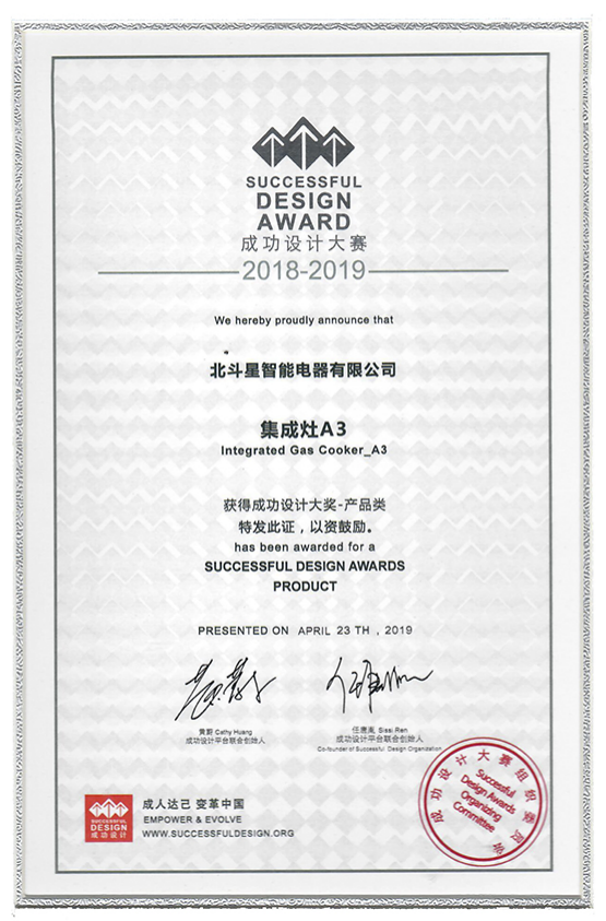 北斗星榮獲全球四大工業設計獎項之一的國際“G-Mark設計獎”,成為集成灶行業首個獲此殊榮的品牌,G-Mark素有“東方設計奧斯卡獎”之稱。