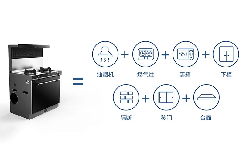傳統灶具特別是油煙機常常要占用廚房的上部空間,空間的利用率較小。另外選購其他電器,采買過程繁瑣混雜,還要協調尺寸、外觀是否配套、空間是否足夠等問題。