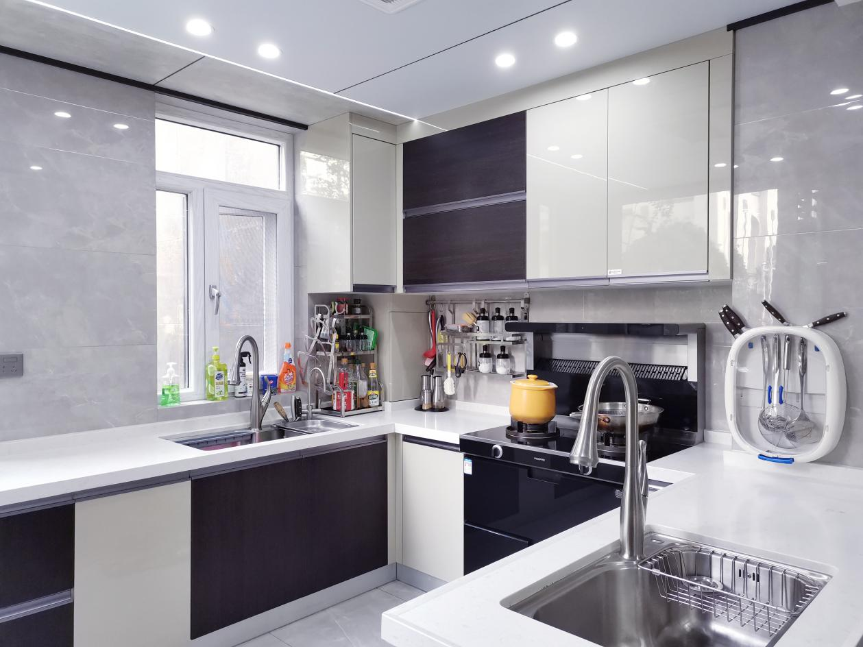 開放式廚房選擇的是黑白相間的色彩設計,簡單大方。這款北斗星集成灶是我做的最明智的選擇,之前擔心的油煙問題、噪音問題、清潔問題……使用過后統統打消了這個顧慮。不愧是集成灶十大品牌