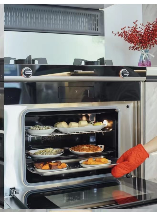 蒸烤箱方面,自帶66L超大容量蒸烤箱,20分鐘搞定一桌菜,輕松為家人烹飪出豐盛家宴。內置“大師菜譜”,6蒸6烤6輔共18種模式,功能廣而全,但實際使用起來并不繁瑣,這樣的交互方式哪怕是一個小白也能直接上手!