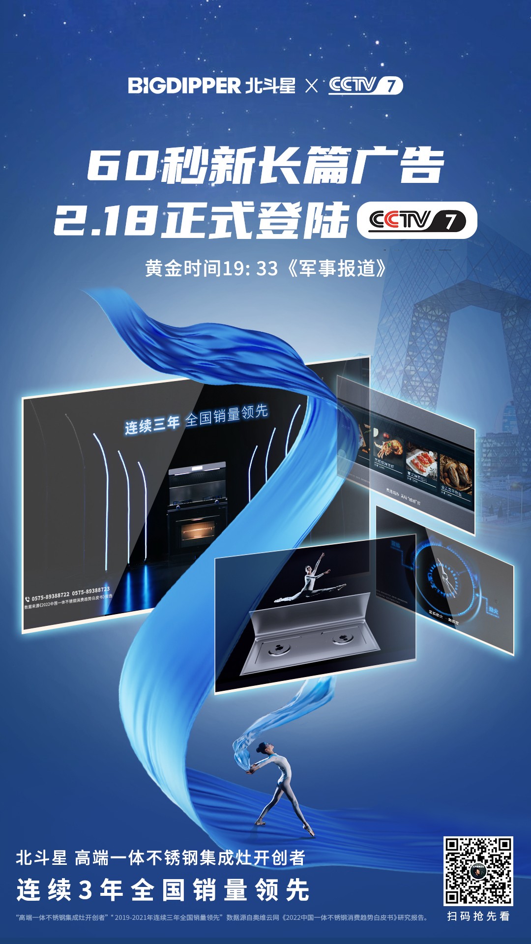 北斗星又又又上央視啦!北斗星高端一體不銹鋼集成灶60秒長篇廣告強勢登陸央視。今晚19:30,鎖定CCTV-7《新聞聯(lián)播》后。