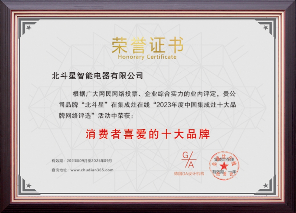 據悉,消費者喜愛十大品牌、市場公信力十大品牌、原創設計金獎是集成灶在線聯合德國GA設計機構重磅推出的集成灶十大品牌網絡評選活動。活動采用消費者網絡投票、實地考察調研的方式,公平公正地評選出集成灶十大品牌。北斗星集成灶憑借強大的綜合實力和品牌影響力在諸多品牌中脫穎而出,實力取勝,北斗星榮獲2023年度集成灶十大品牌“消費者喜愛的十大品牌”
