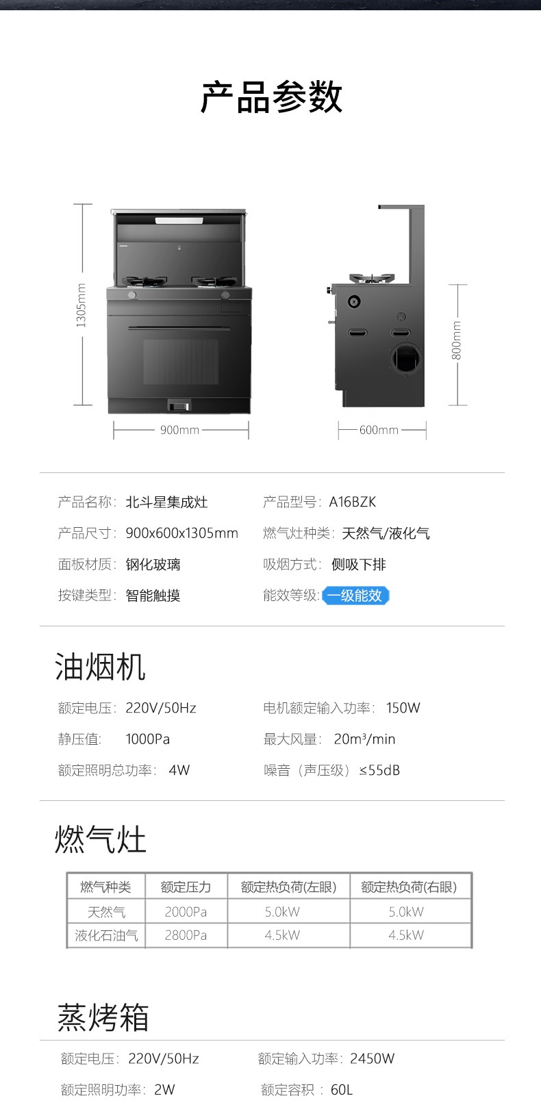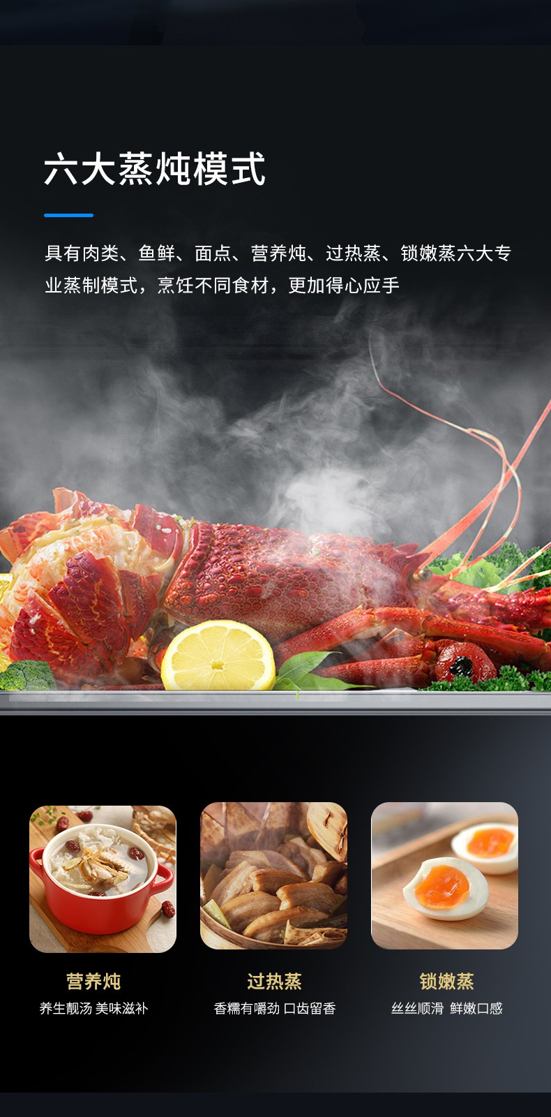 蒸烤箱.2.0kW雙蒸汽直噴 六大蒸燉模式 專業烤制模式